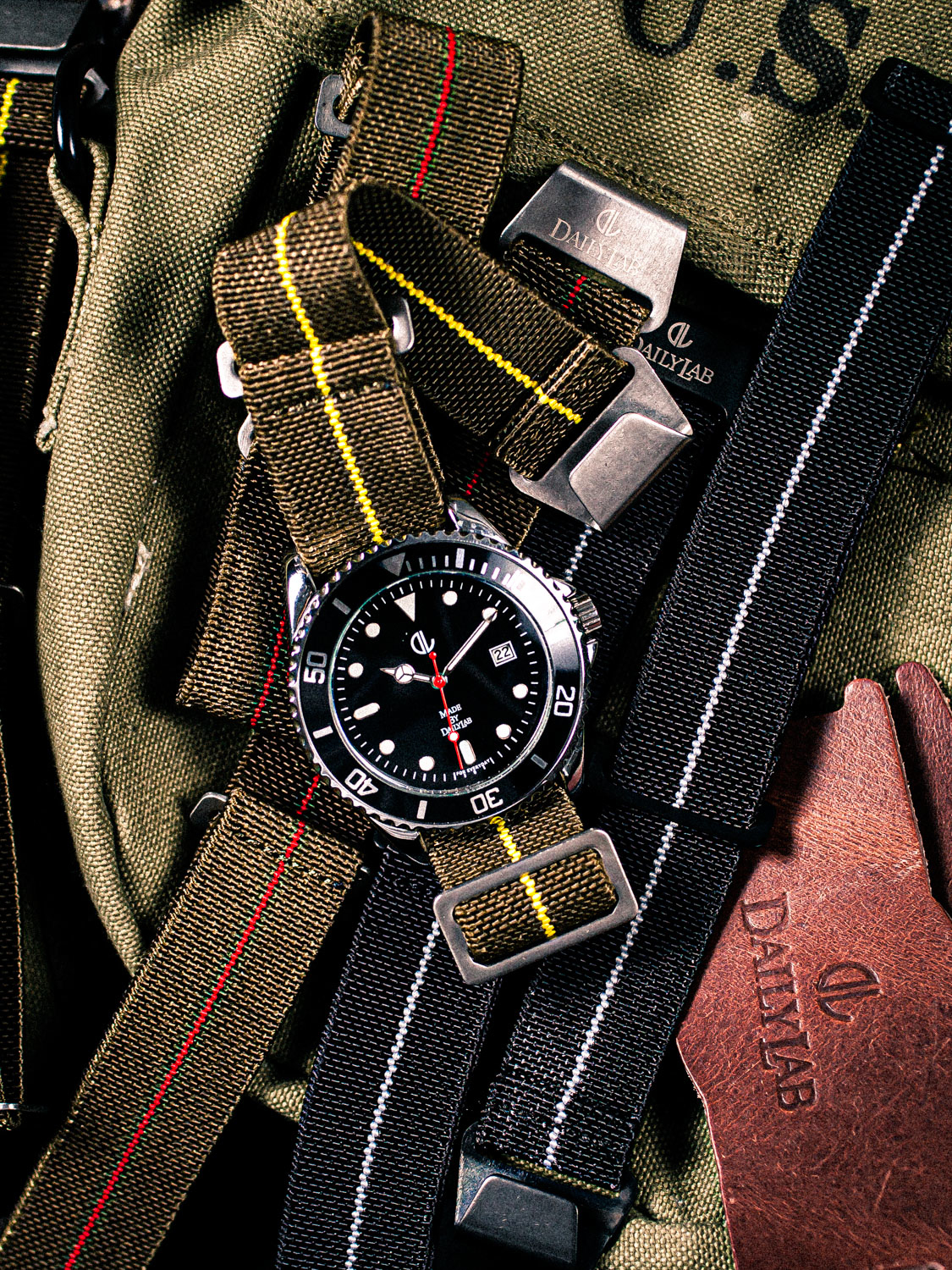 DailyLab|60"s 法國海軍 降落傘彈性錶帶 軍綠/紅